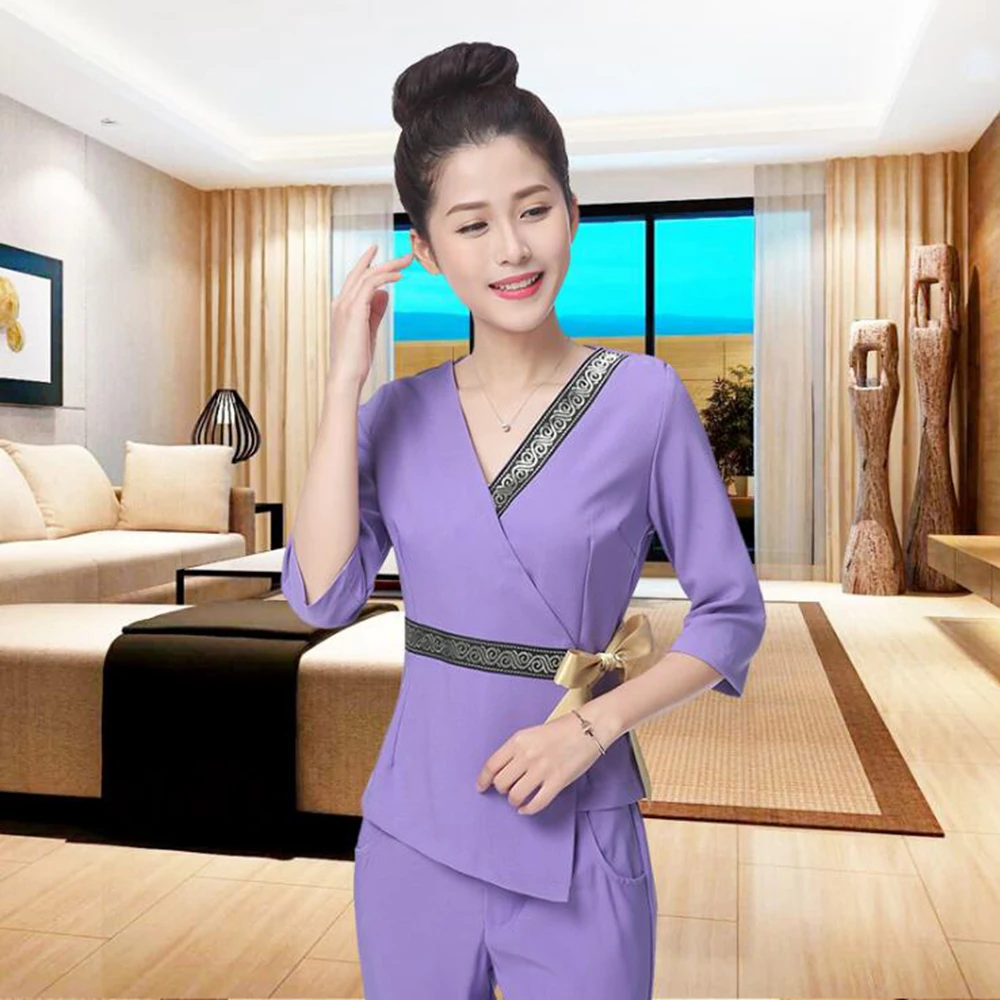 Lab Jacket+Pants Hotel Waiter Aviation Uniform Women Short Sleeve Medical Uniform Lady Beauty Salon